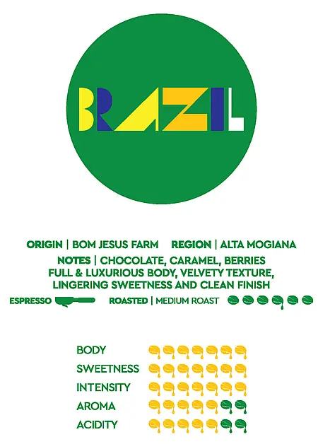 Γνωρίστε τη μαγεία της Βραζιλίας μέσα από τον espresso Single Οrigin της GENTRACOM S.A. Μια εμπειρία που αναδεικνύει τις εκλεκτές γεύσεις και αρώματα της περιοχής. Ο καφές μας προέρχεται από τους καλύτερους καλλιεργητές της Βραζιλίας, που με μεράκι και αφοσίωση επιλέγουν τους ποιοτικότερους κόκκους. Το αποτέλεσμα είναι ένας καφές με έντονα αρώματα σοκολάτας, καραμέλας και μούρων που εναρμονίζονται απόλυτα, δημιουργώντας μια πλούσια και πολυδιάστατη γεύση. Με μια ευχάριστη βελούδινη υφή και ένα πλούσιο, γεμάτο σώμα, ο espresso μας προσφέρει μια απόλυτα ικανοποιητική εμπειρία γεύσης. Η γλυκιά επίγευση διαρκεί, κάνοντάς σας να επιθυμείτε να ανακαλύψετε περισσότερα από αυτήν την εξαιρετική ποικιλία.